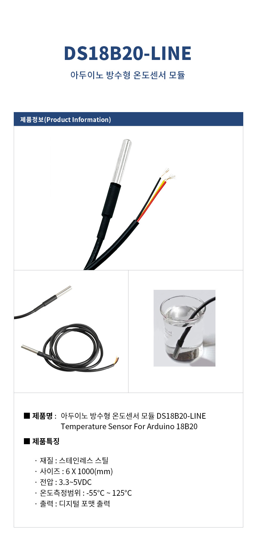 아두이노 방수형 온도센서 모듈 Temperature Sensor For Arduino 18B20 DS18B20-LINE