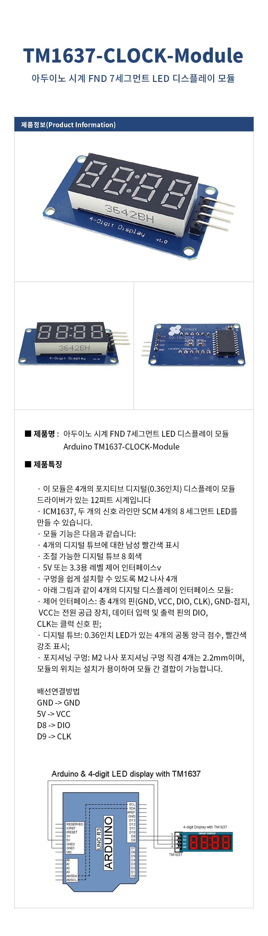 아두이노 시계 FND 7세그먼트 LED 디스플레이 모듈 Arduino TM1637-CLOCK-Module