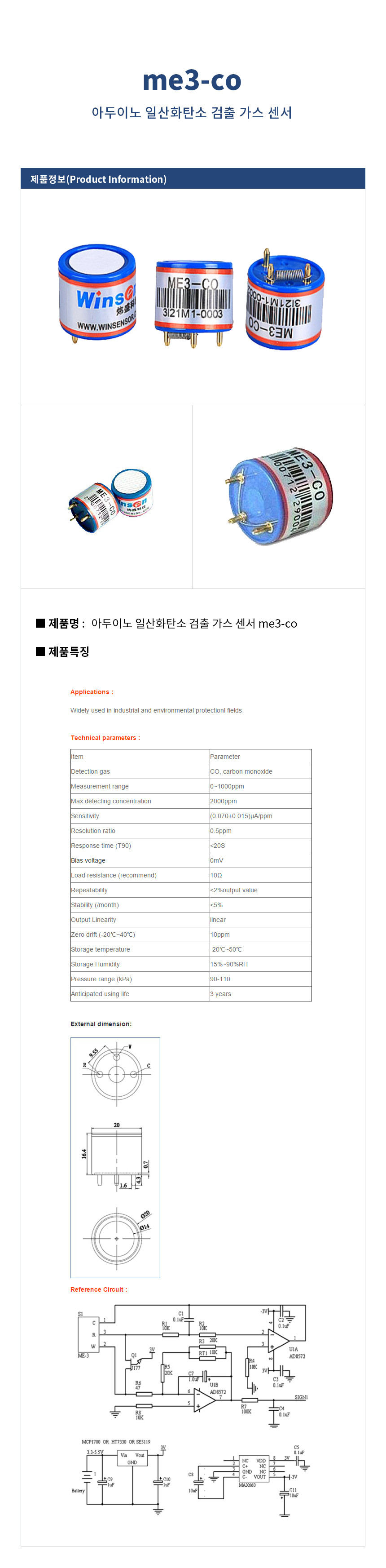 아두이노 일산화탄소 검출 가스 센서 me3-co